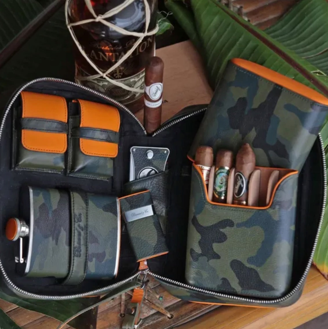 The Havana Traveler is the most luxurious compendium for the cigar aficionado on the go. Crafted of the finest top grain leather, it opens to unveil a suede lined compartment. The Havana Traveler comes with the following products: