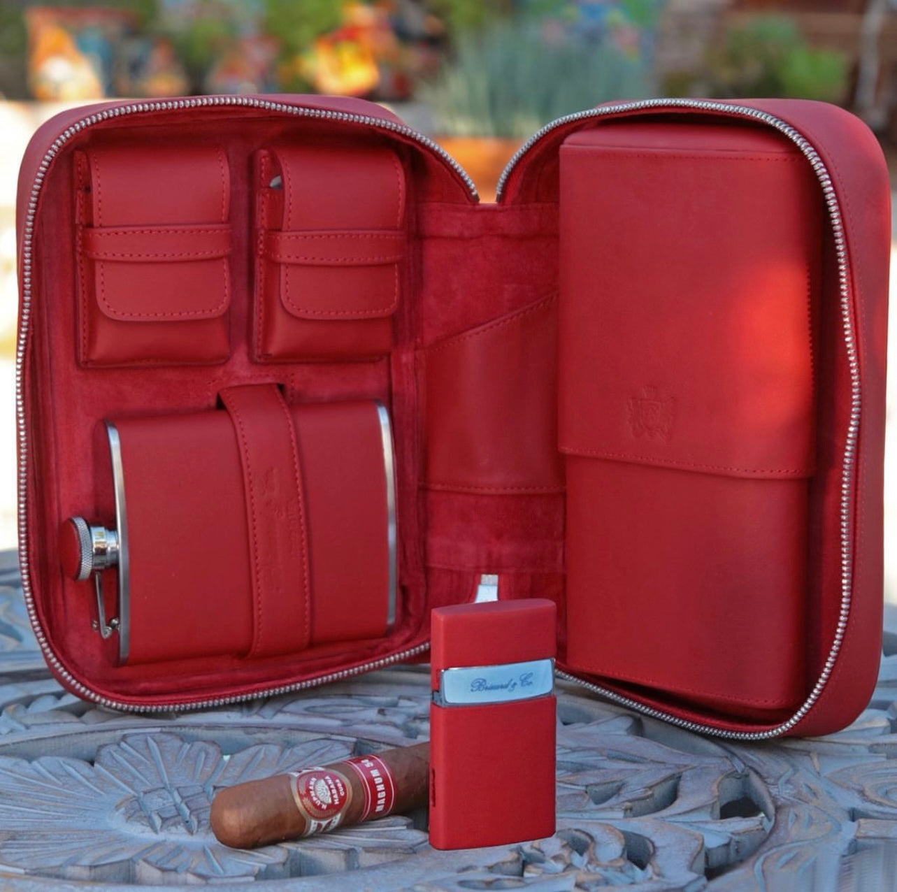 The Havana Traveler is the most luxurious compendium for the cigar aficionado on the go. Crafted of the finest top grain leather, it opens to unveil a suede lined compartment. The Havana Traveler comes with the following products: