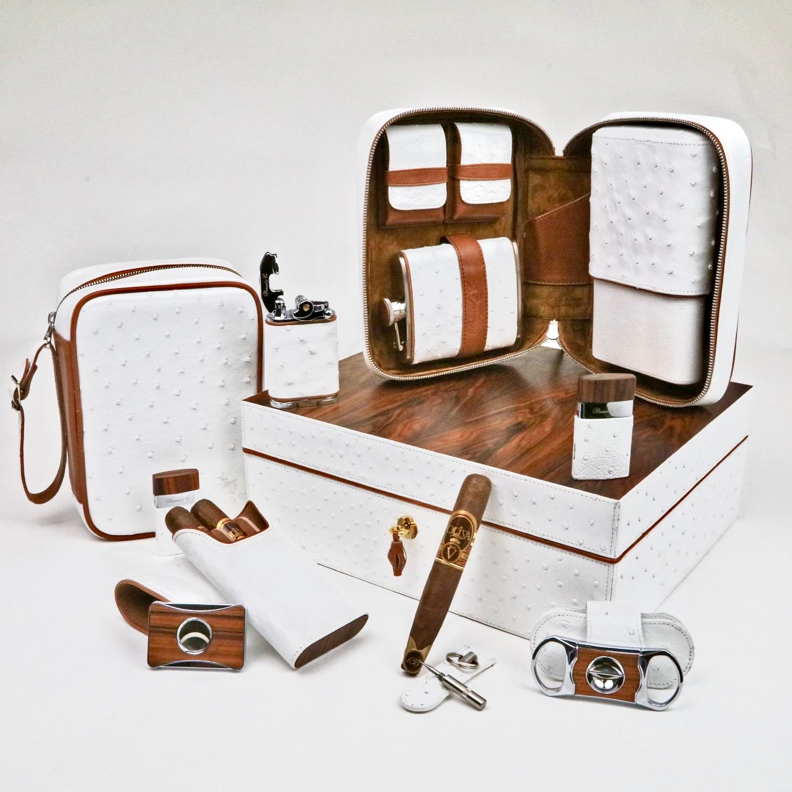 The "Airflow" Cigar Humidor - White Ostrich Leather and Rosewood (60/70 Count)