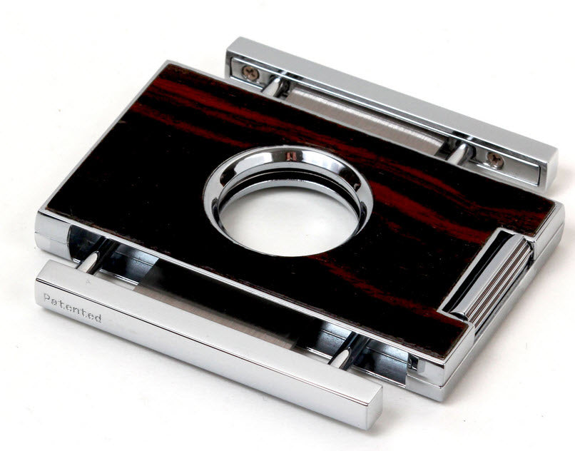 The "Elite" is more than a premium precision cutter. It is a piece of men’s jewelry. Ultra flat, the blades open with a spring release upon tilting of an inlay button. This professional grade cigar cutter cuts up to a 60-ring gauge with two stainless blades for a stealthy, even cut.