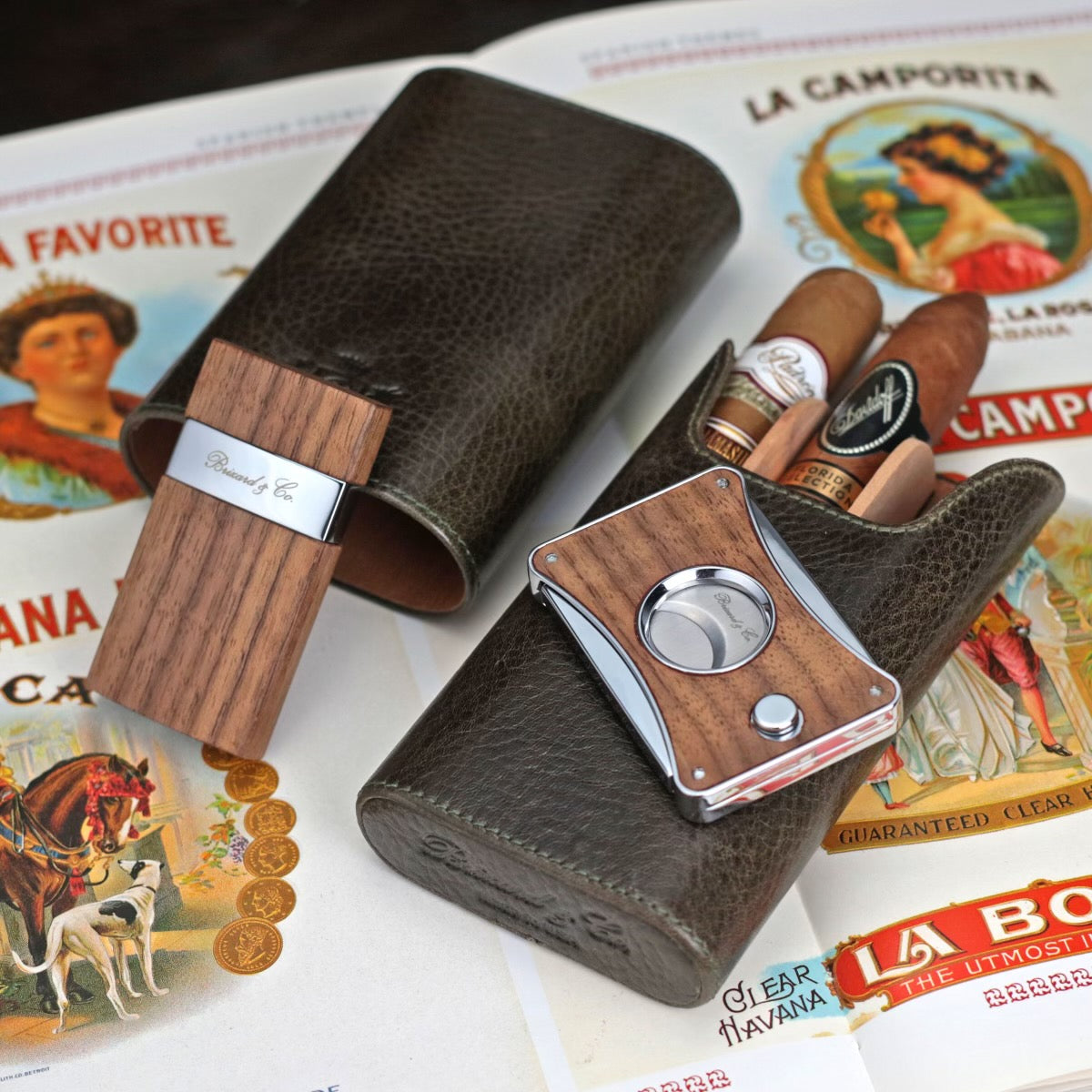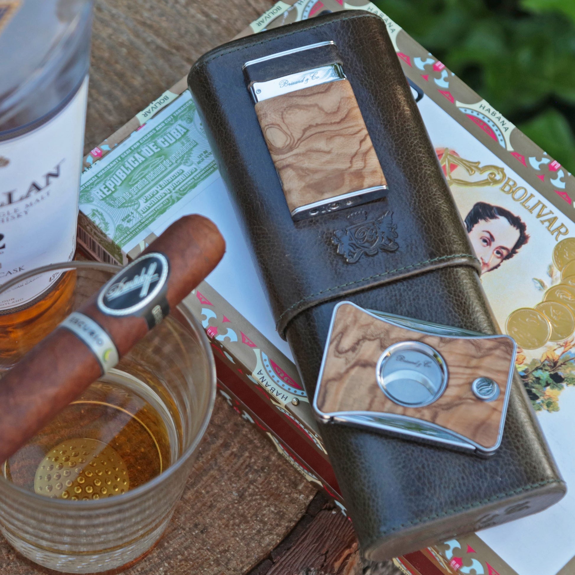 The "Show Band" 3 Cigar Case - Antique Olive Leather