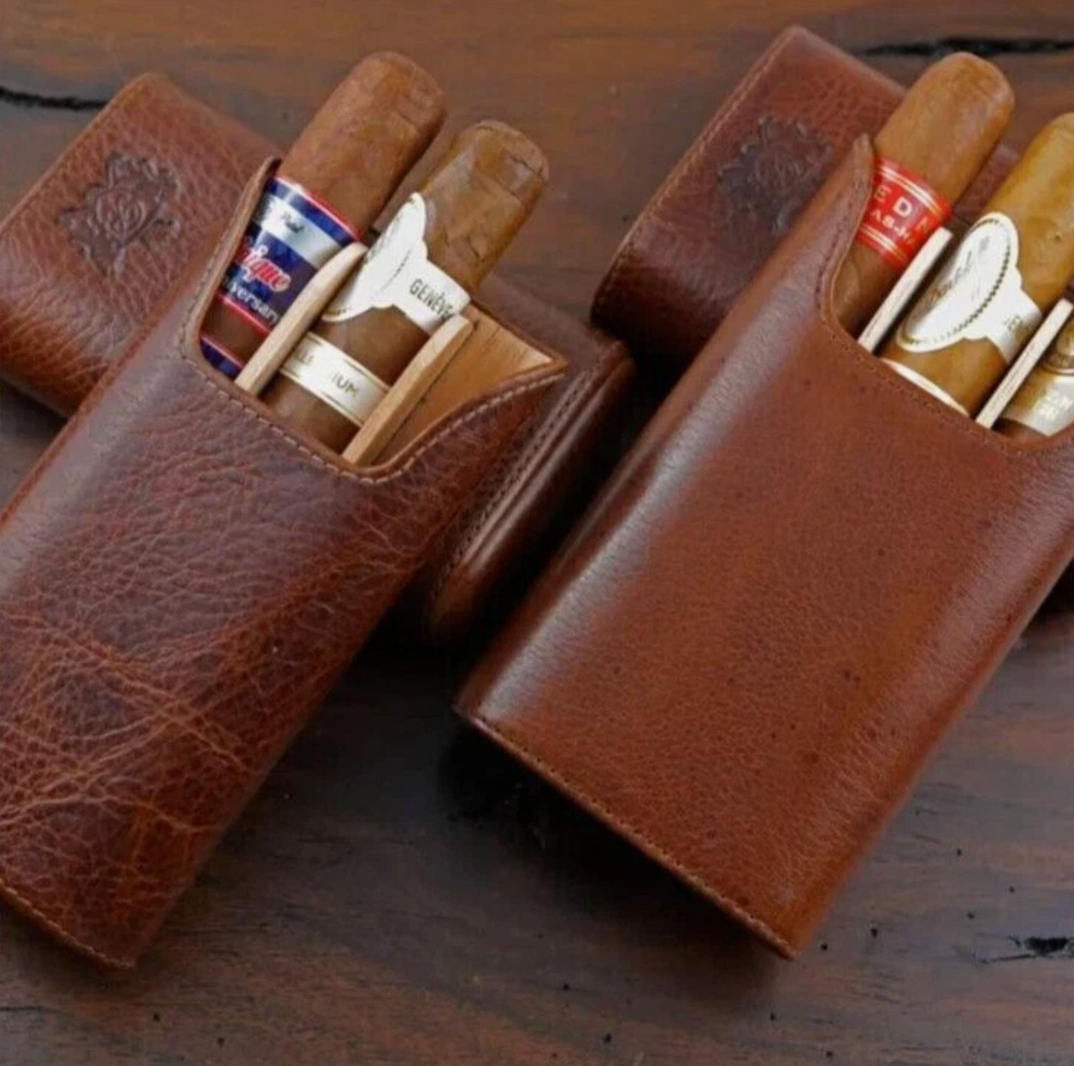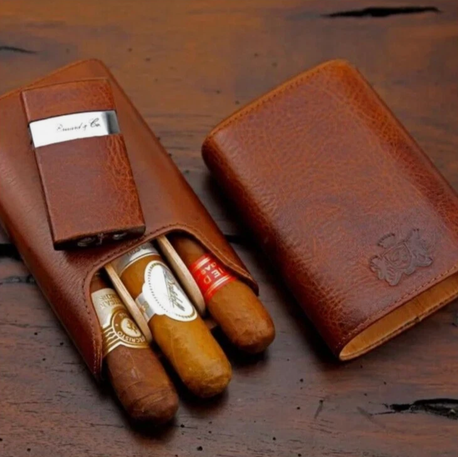 The "Show Band" 3 Cigar Case - Antique Saddle Leather