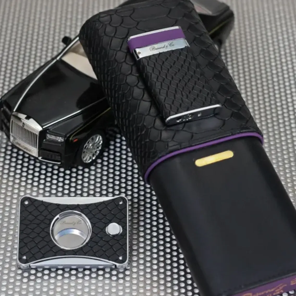 The "Show Band" 3 Cigar Case - Black Python Pattern and Purple Leather (Limited Edition)