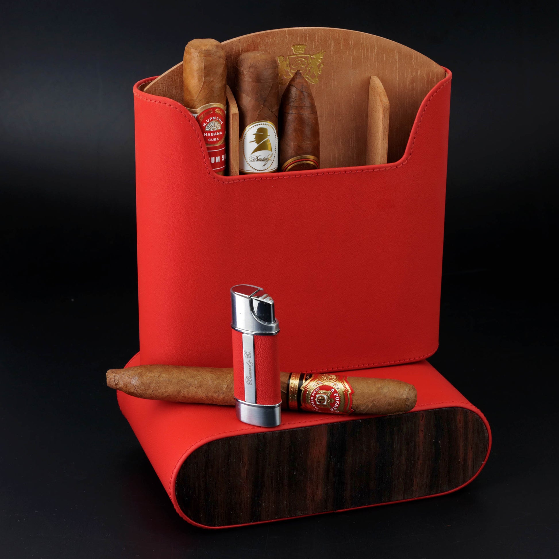 The "Show Band" Travel Humidor - Red Leather and Macassar Ebony