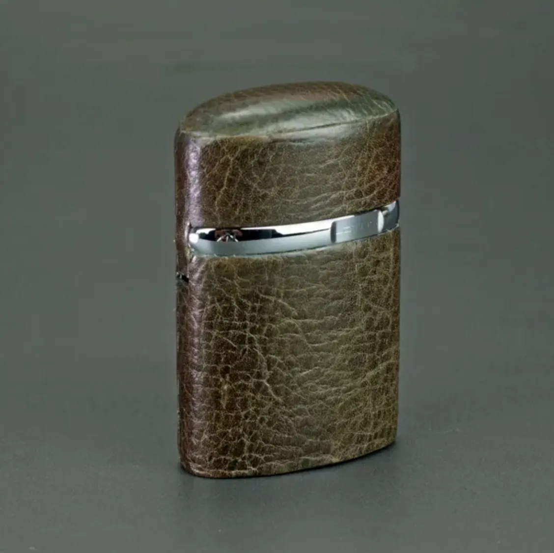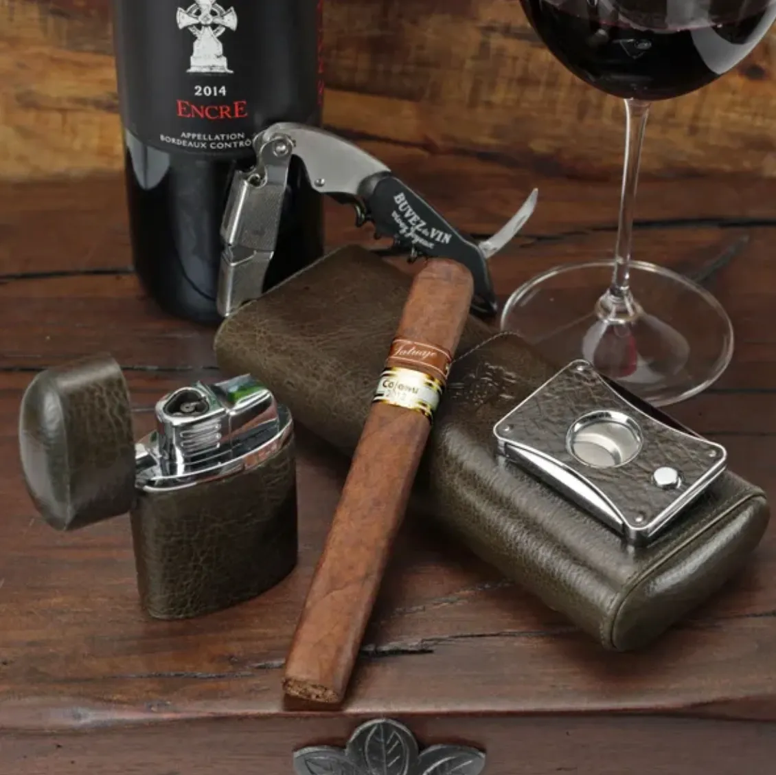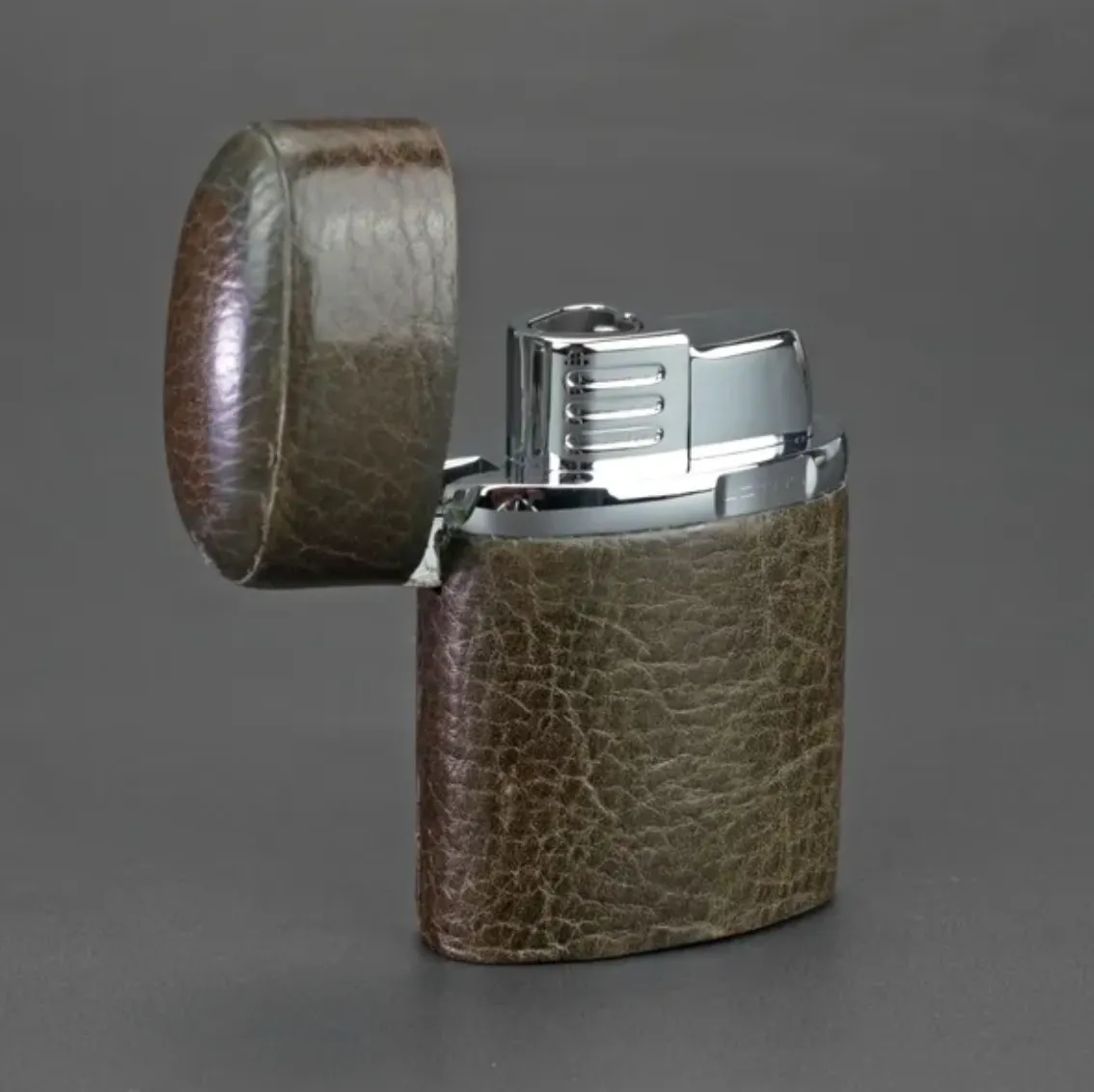 The "Triple Jet" Table Lighter - Antique Olive Leather