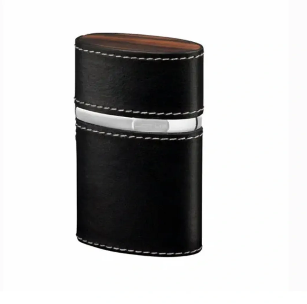 The "Triple Jet" Table Lighter - Black Leather and Macassar Ebony