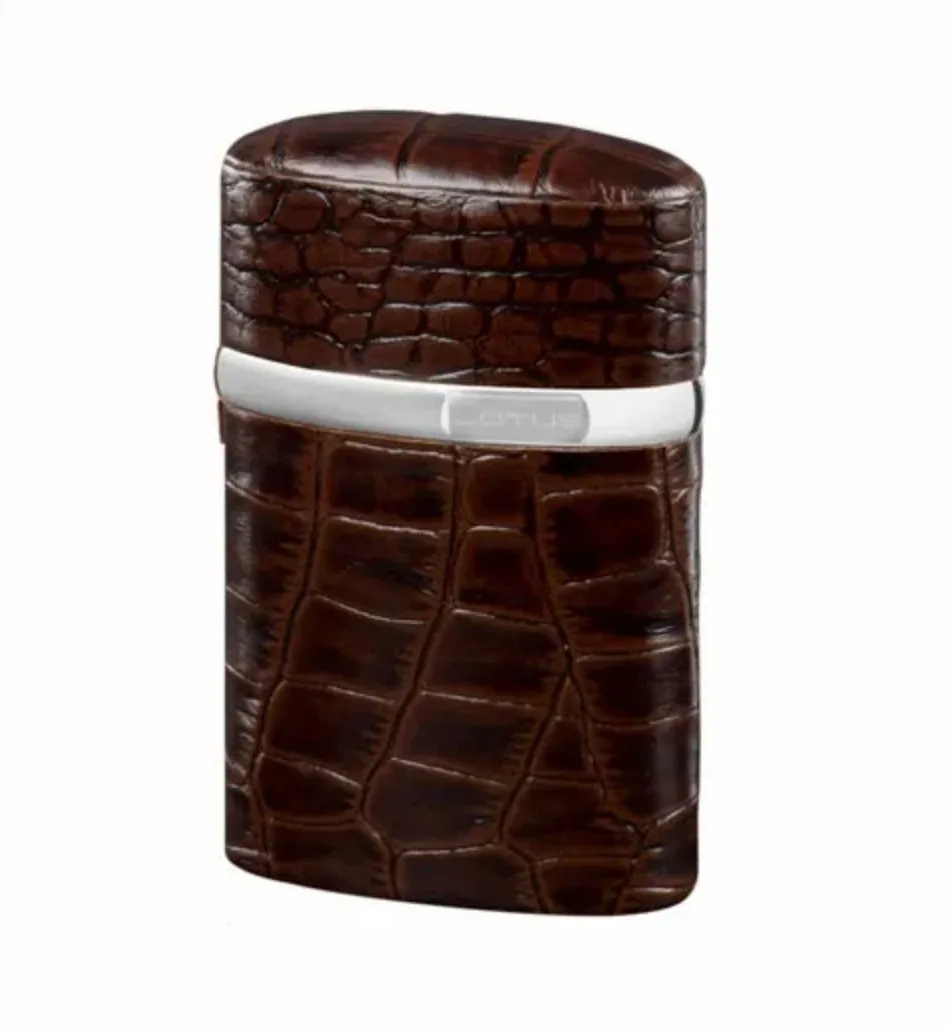 The "Triple Jet" Table Lighter - Croco Pattern Tobacco